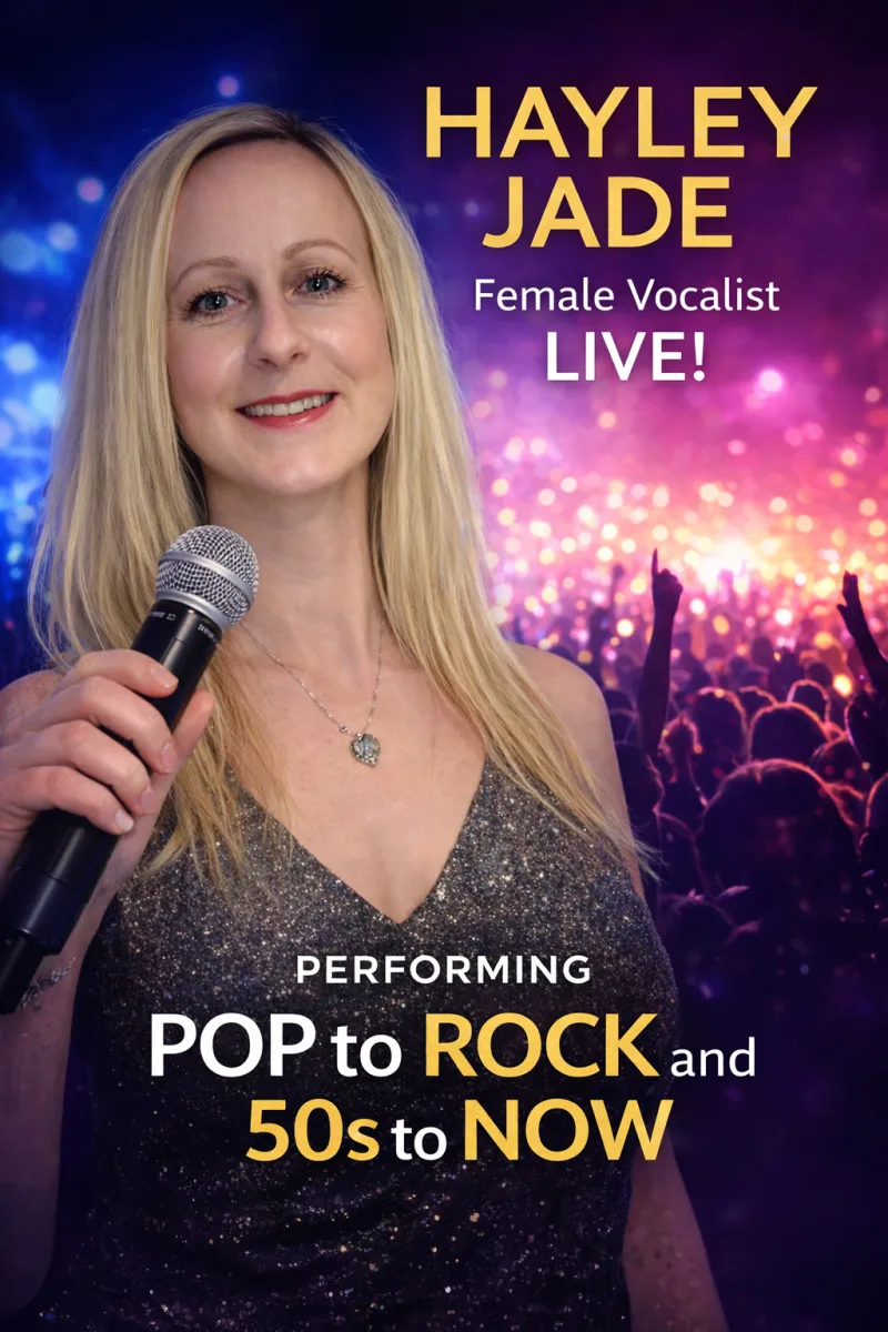 Wi th a Bubbly, fun personality singing cover songs & originals in her own style, Hayley will add that extra Sparkle to your event.