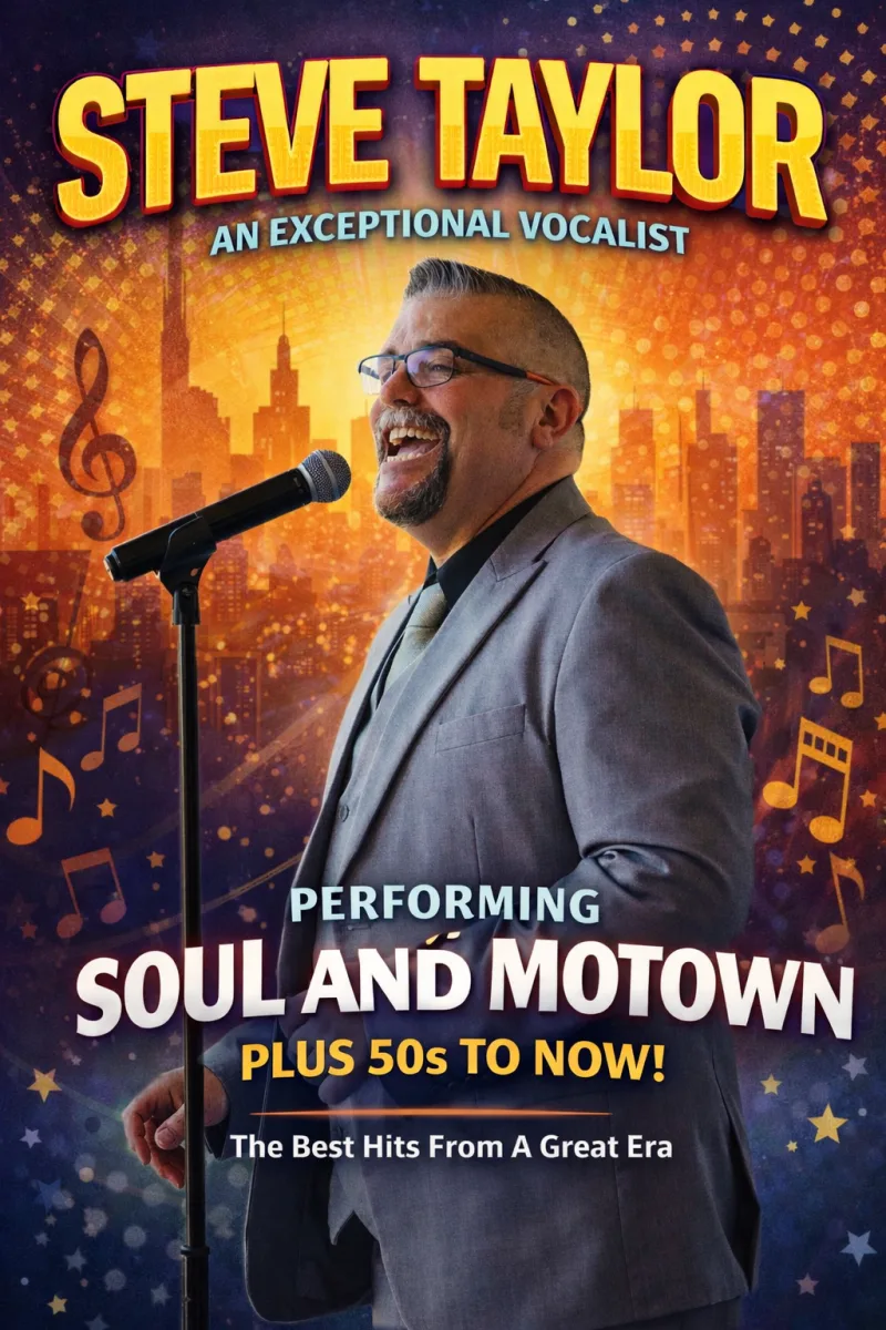 Singing a range of songs from Motown, the swinging 50's, 60's, 70's and 80's, 90's and up to date. Coming from the stage, Steve can even perform West End Musical hits as well, so plenty to entertain every age group. His work has taken him to many different venues including Pubs, Clubs, Hotels, Corporate Functions and Ships.